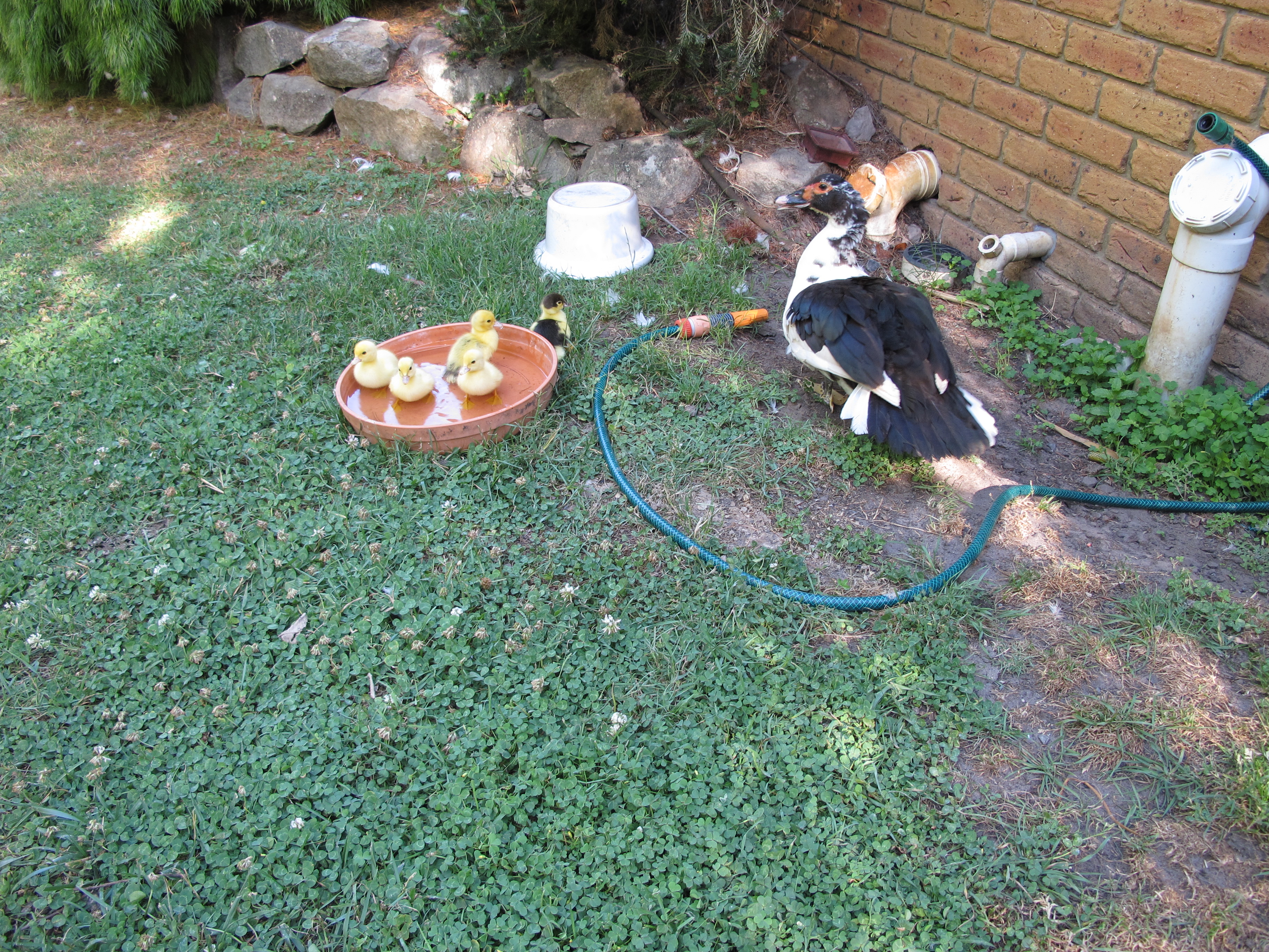Ducklings February 11, 2014 Proud Mum supervising her babies’ first bath. Some are developing very definite personalities already – the darkest is the most adventurous, the plain yellow one is not going to be too smart I fear. She/he is always the last to follow mum. Share this: Share on X (Opens in new window) X Share on Facebook (Opens in new window) Facebook Like Loading... Related