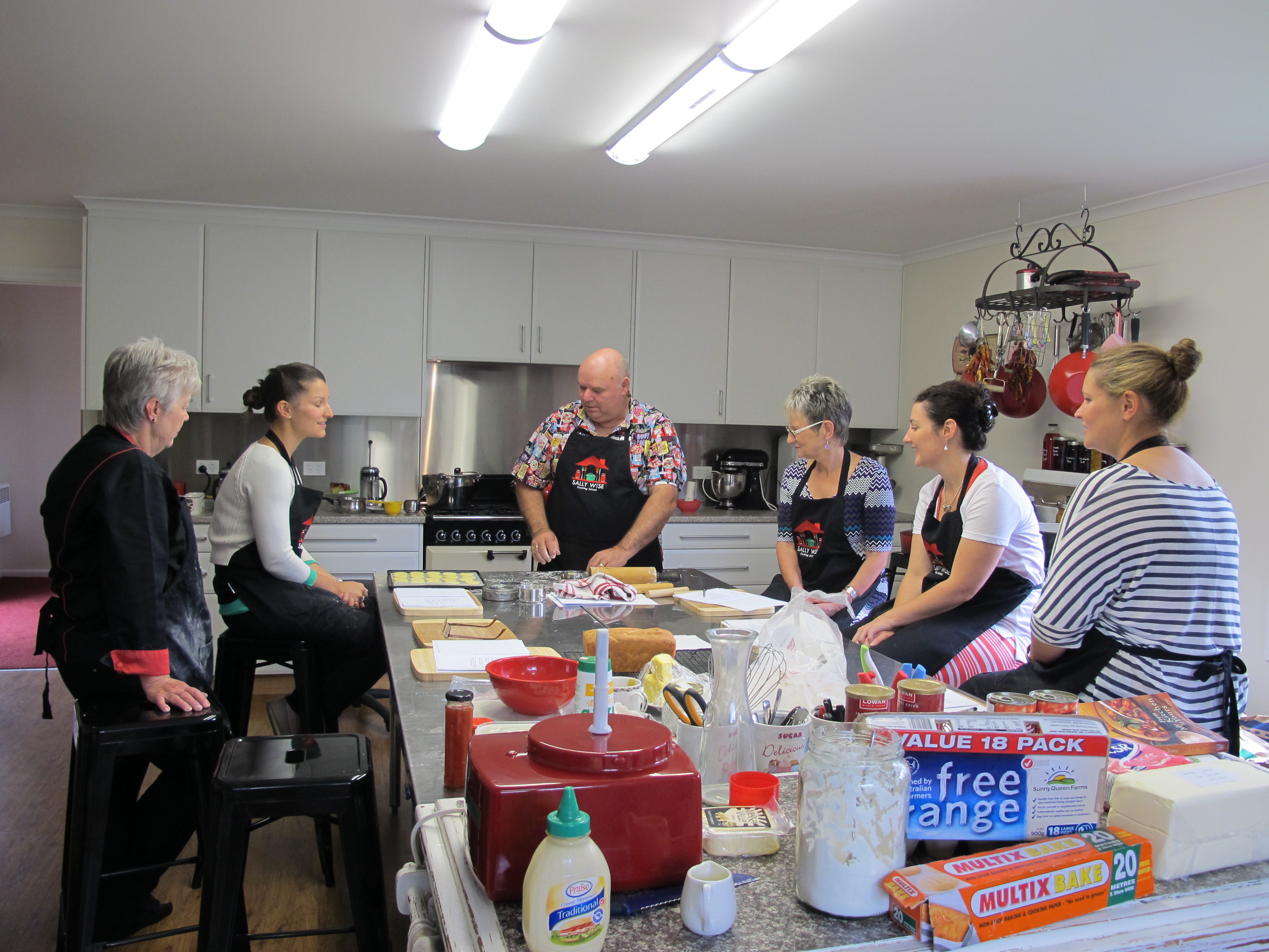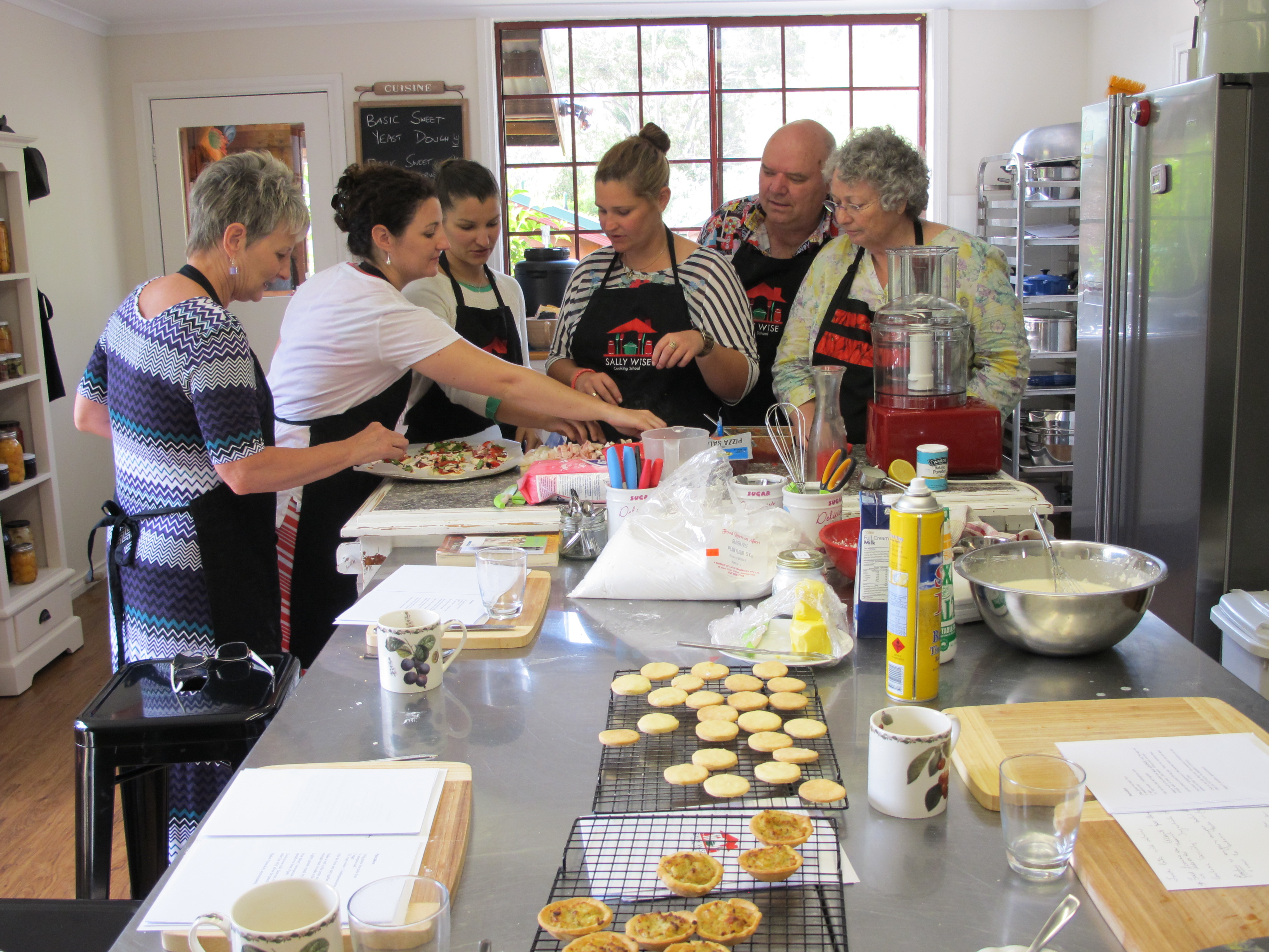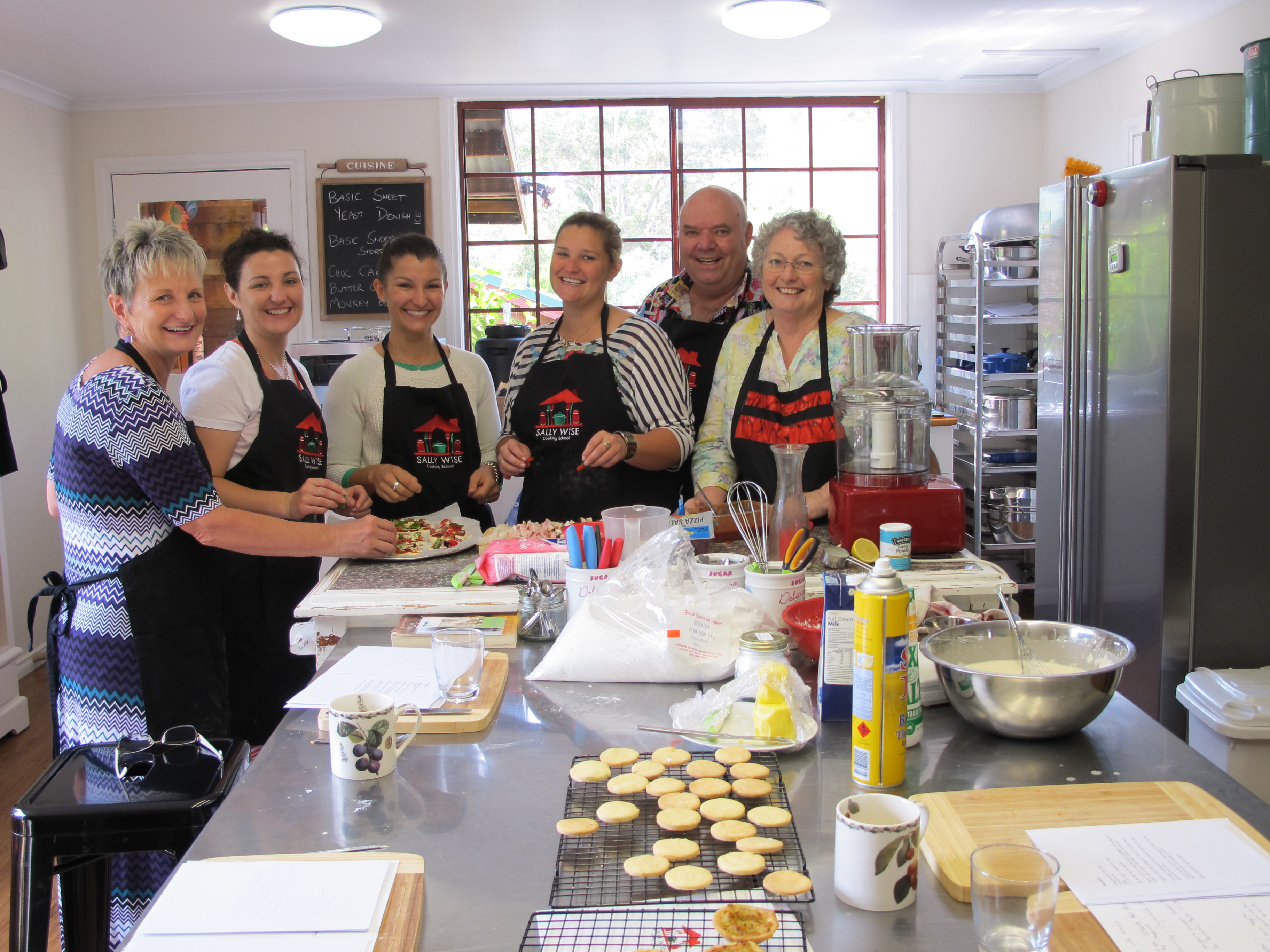 The gluten free class here last Saturday was such a lot of fun. Great people AND, I have to say, a great new product put through its paces. At least it’s not a product or brand I’d ever used before. At Food Lovers on Albert (Lucas Trading) in Moonah I purchased Well & Good brand gluten free flour and it was AMAZING! We made bread, quiches, biscuits (savoury and sweet, the latter made into kiss biscuits), silvan berry meringue pie, cakes, pancakes and more, and all were very successful. Here are some photos of the jolly crew that day.