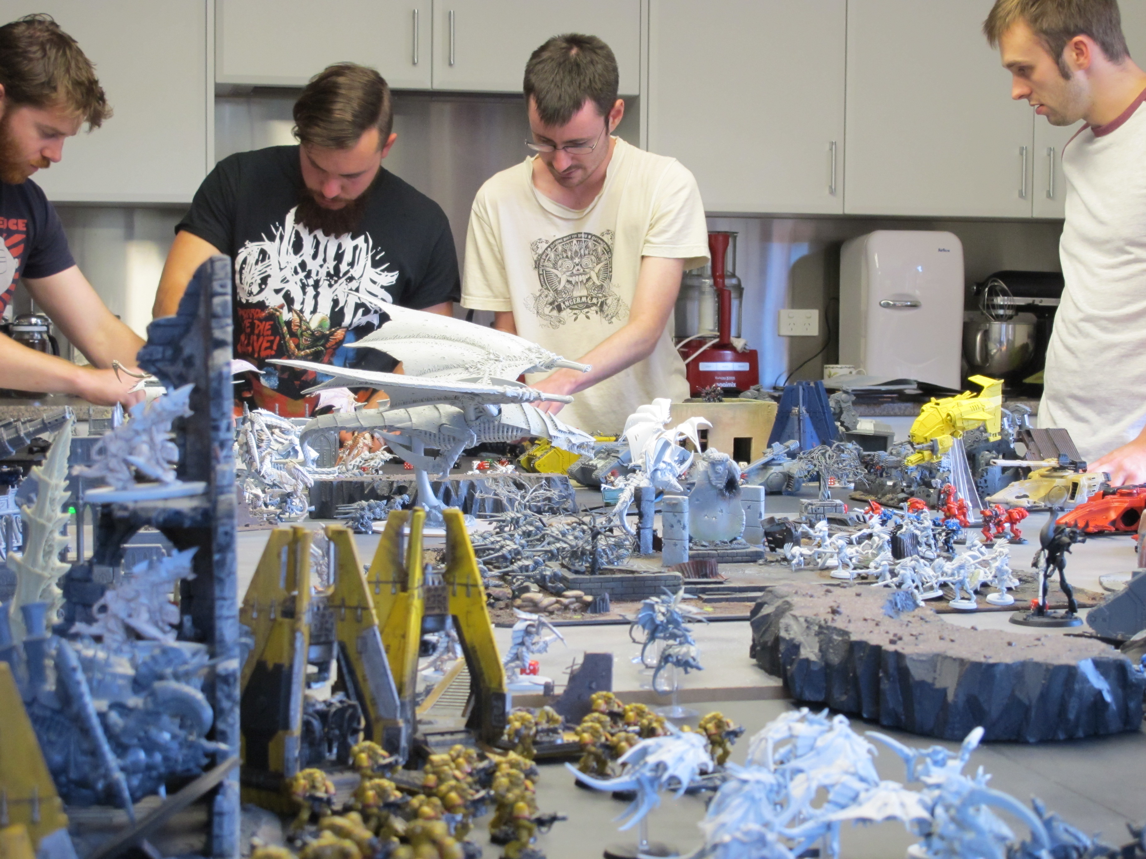 Of course, it’s not that there’s been no time for fun over the last four weeks. For instance: when is a cooking school not a cooking school? When it’s converted to the scene of a Warhammer game, such as last Saturday when son Elliott and several of his friends set up a battle in the cooking school space.