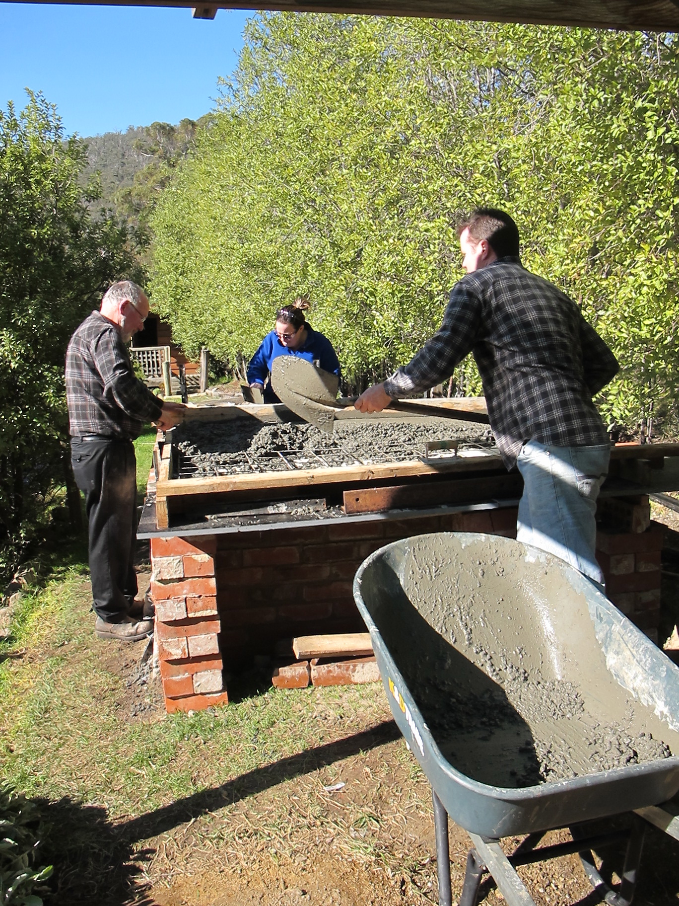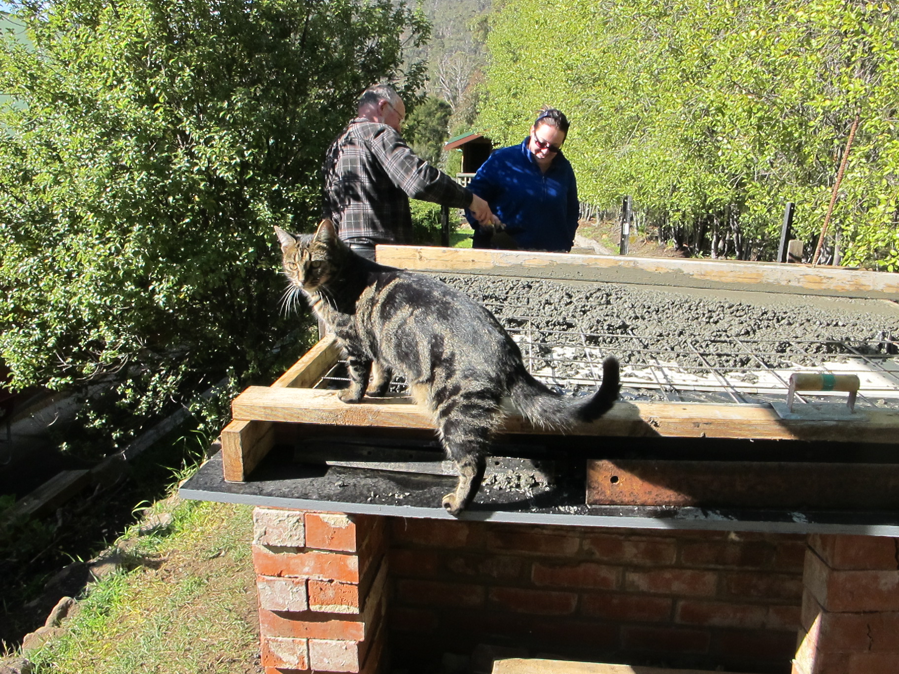 After a busy afternoon, progress with the bread oven is significant… thanks to Nat and Stephanie for their assistance. Also to Della the dog and Rosie the kitten for their supervision…..