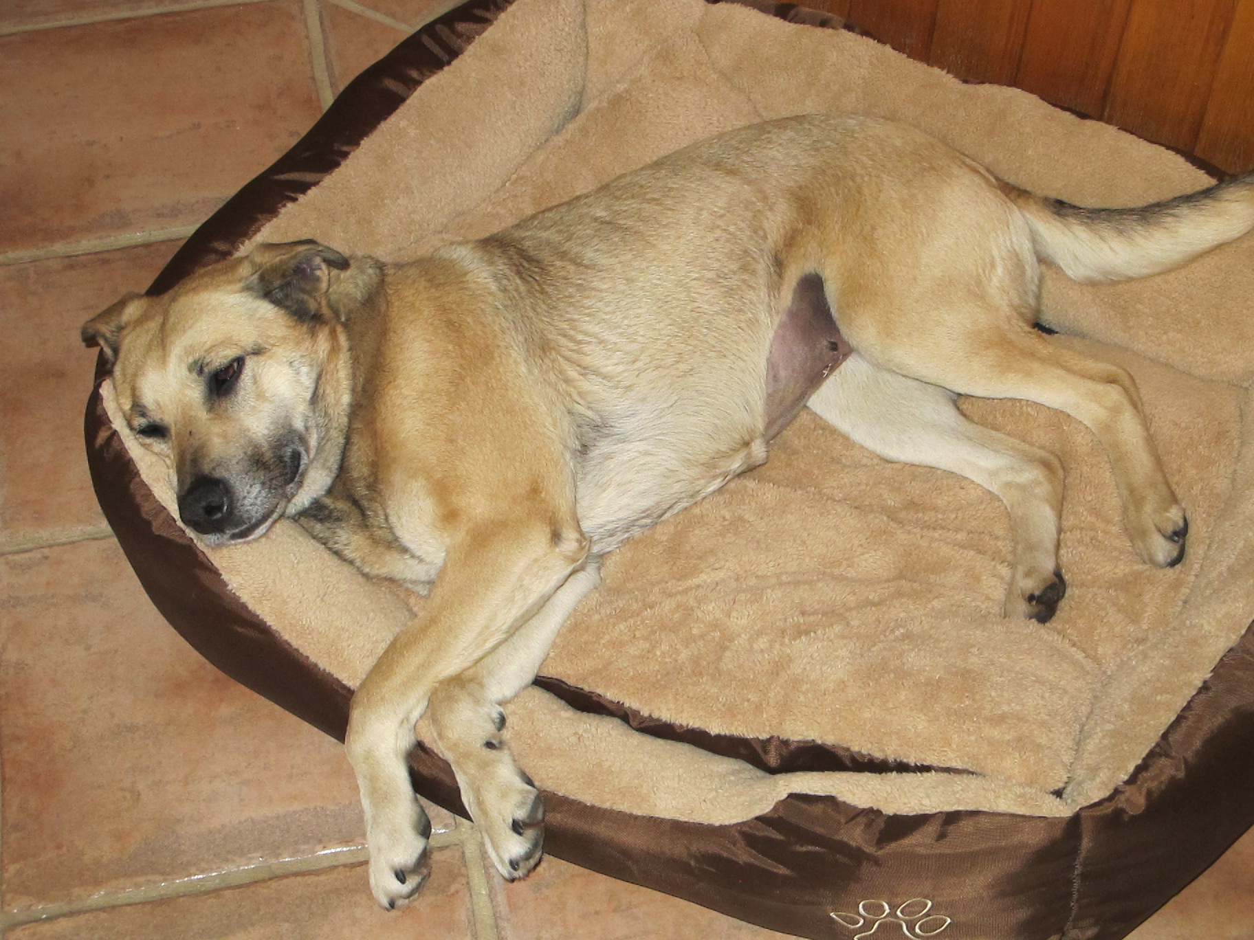 The cats are none too impressed in the manner of cats, but it’s not because she chases them. They are just accustomed to pride of place, but old beagle Della is very happy with her new friend and takes her exploring all over the property.