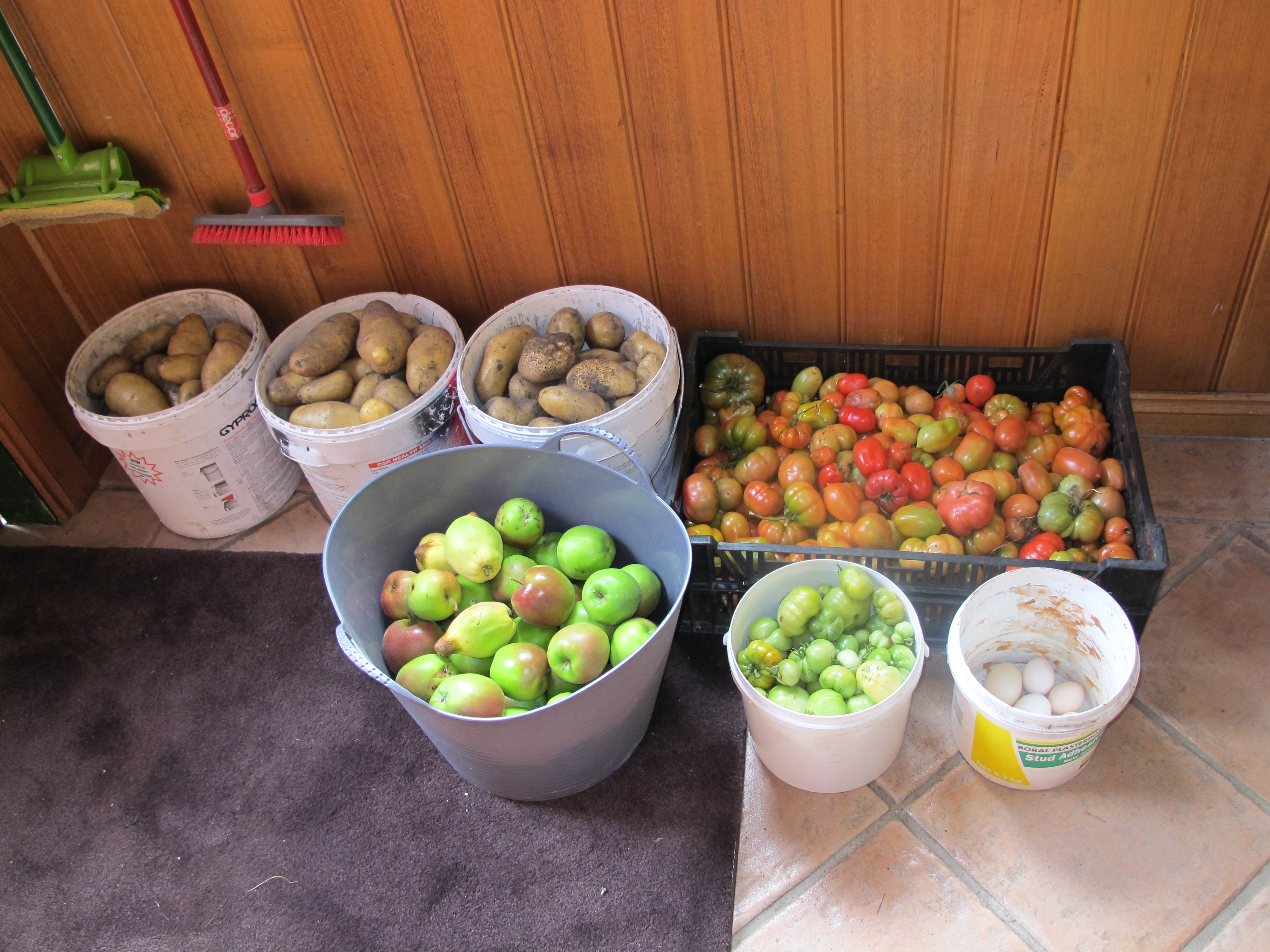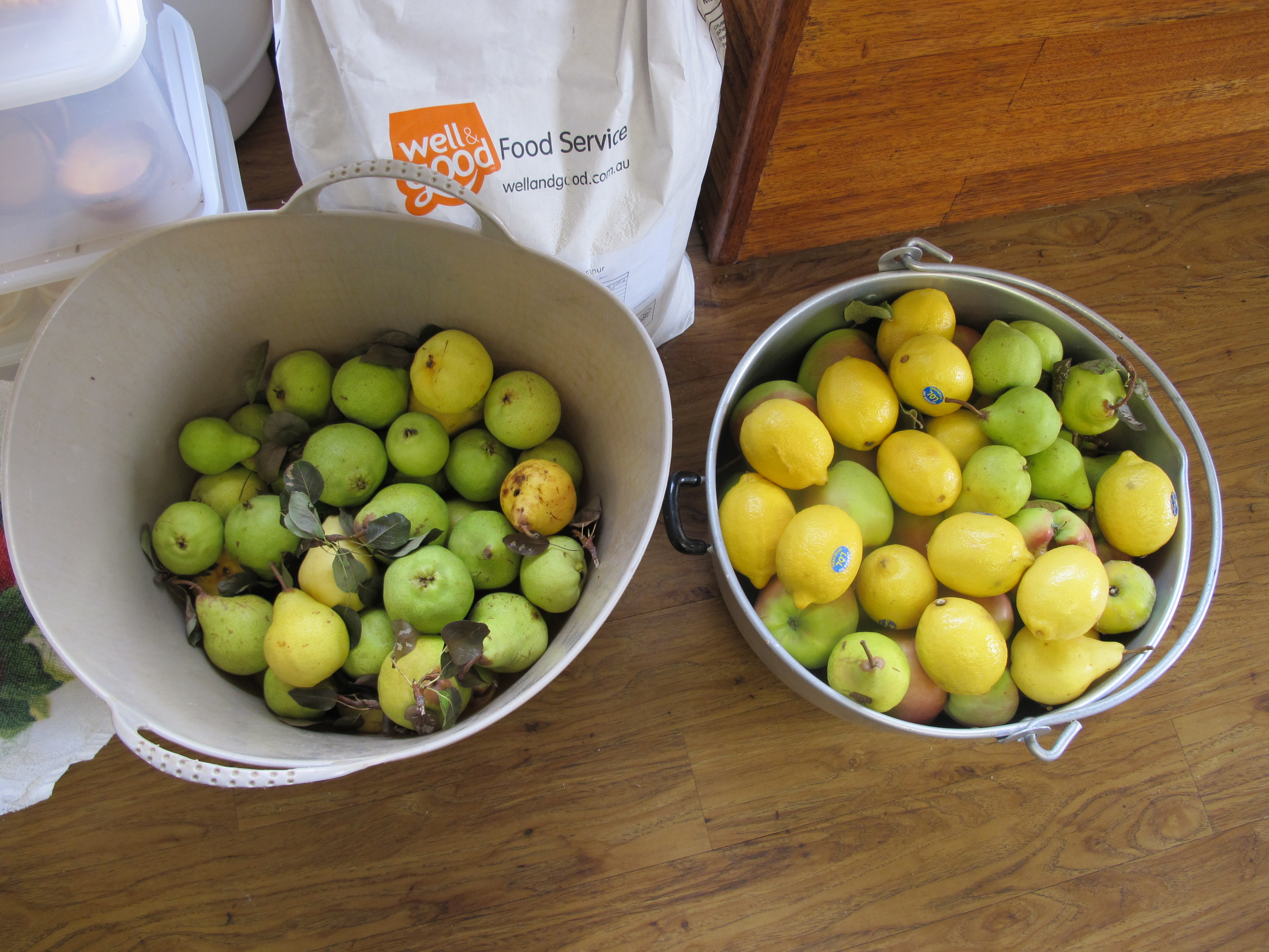 A goodly number of these below will need to be used also, though quite a few will be turned into juice this Sunday, then bottled, turned into cider and/or cider vinegar and peri-peri. A good amount of it will be bottled and preserved by the waterbath (Fowlers-style) method so we can have a good supply for the entire year. For this we’re hiring an apple scratter from a brewing shop. To make the cost of this worthwhile we are going to pick more fruit from friends’ trees.