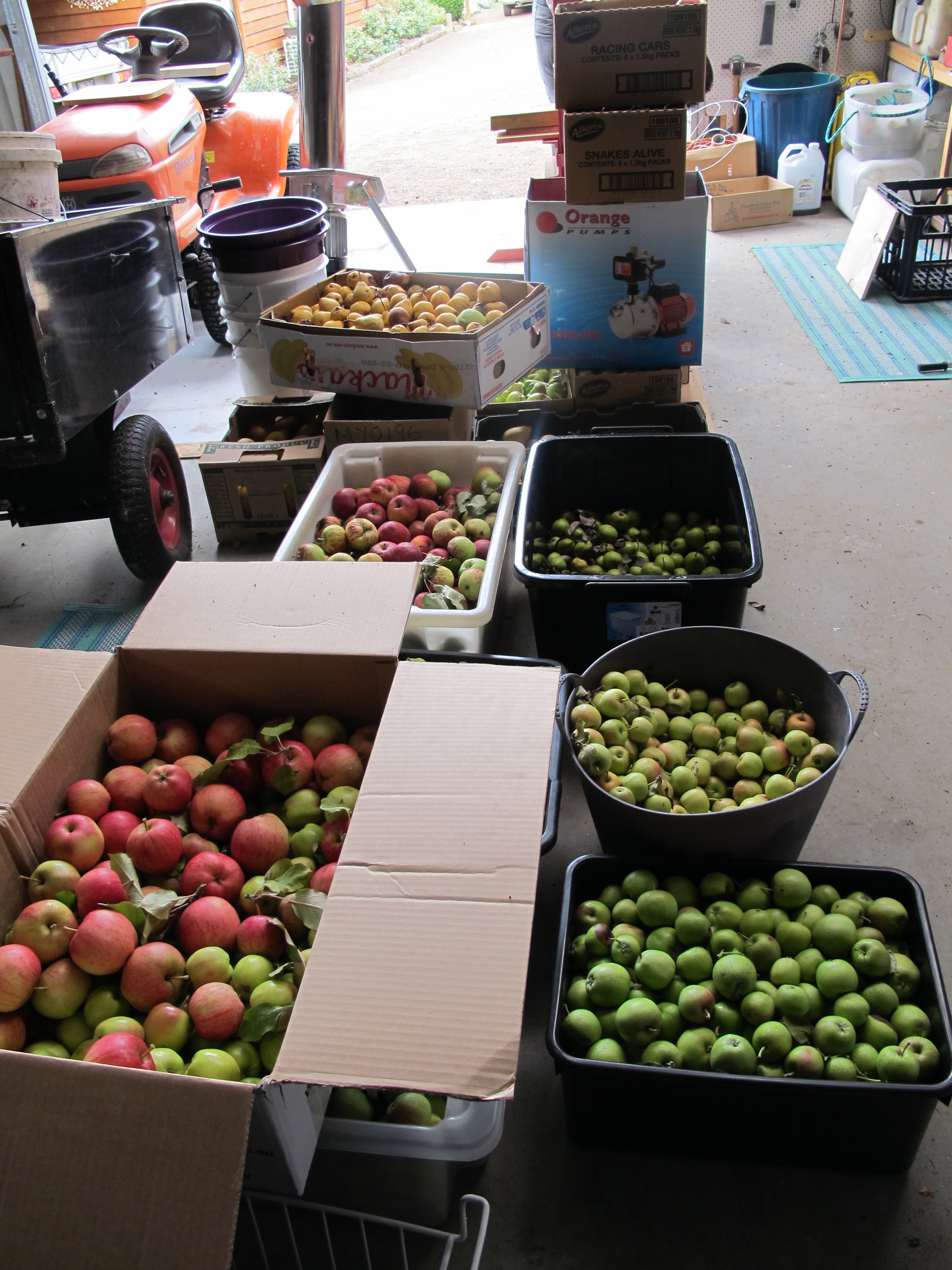 Well, today was D-Day for juicing all the fruit stored in the shed. Apples, pears and quinces by the boxful have been gathered over the last week or so – from our garden, Stephanie and Nat’s and donated to us by generous friends.