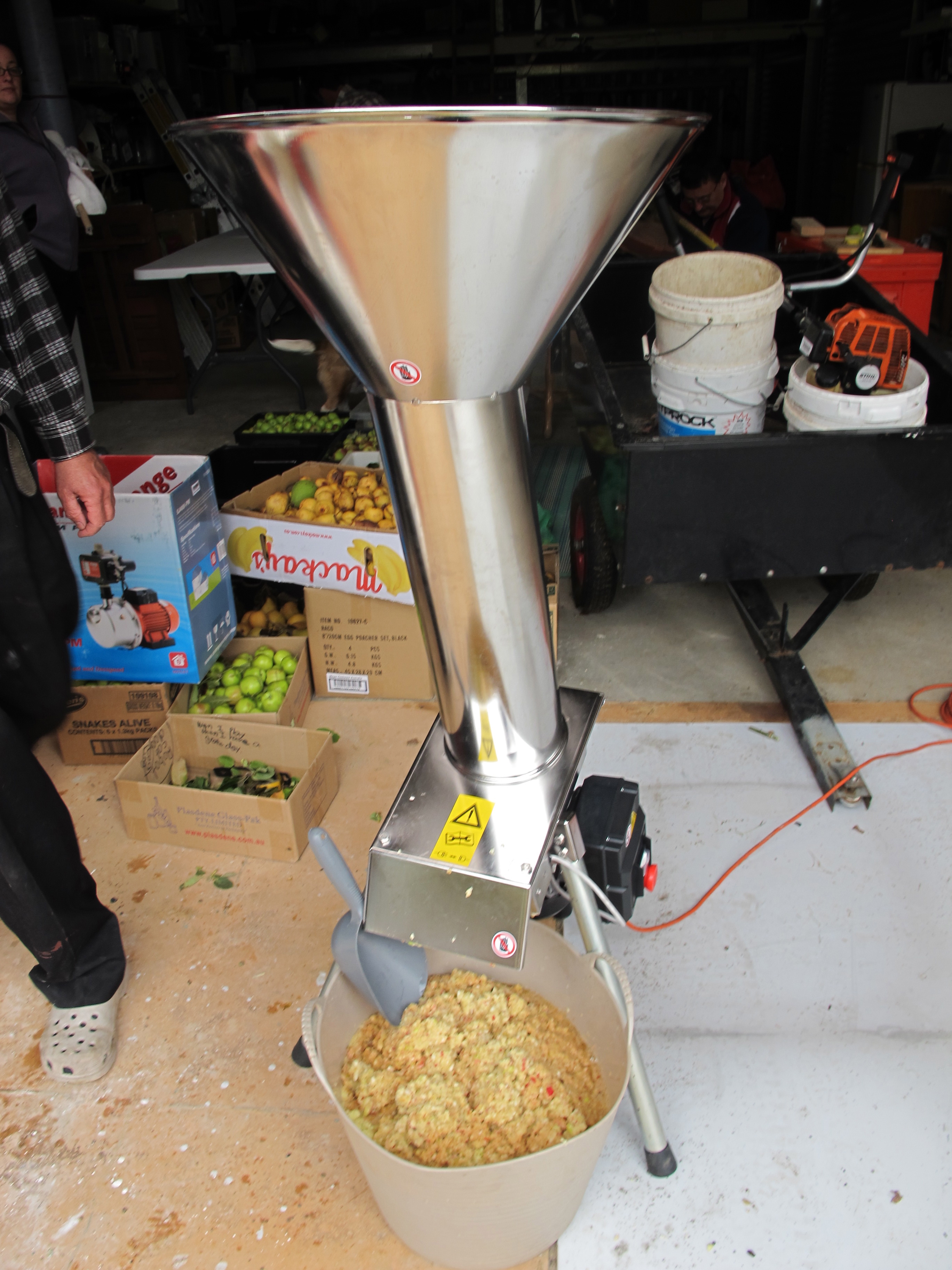 We hired a scratter from Brew Tas (Liverpool St Hobart) that made short work of munching up the fruit. Apparently it can process up to 800kg an hour.