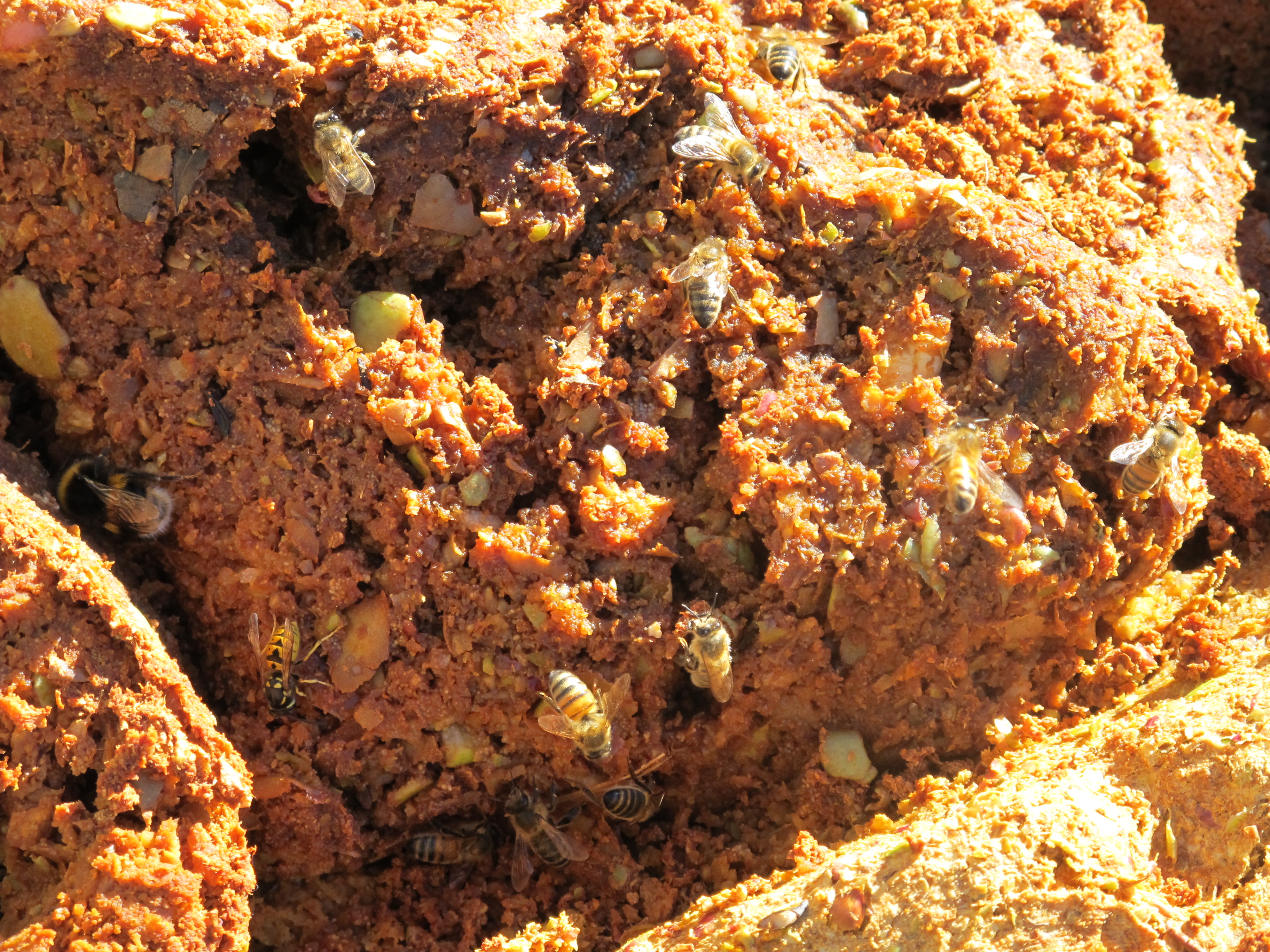 Today the last barrowful is being visited by hundreds of bees and bumble bees. I would have expected wasps but there is barely one to be seen. The quince seems to be their fruit pulp of choice. Hope it helps them to get through the long, cold winter to come.