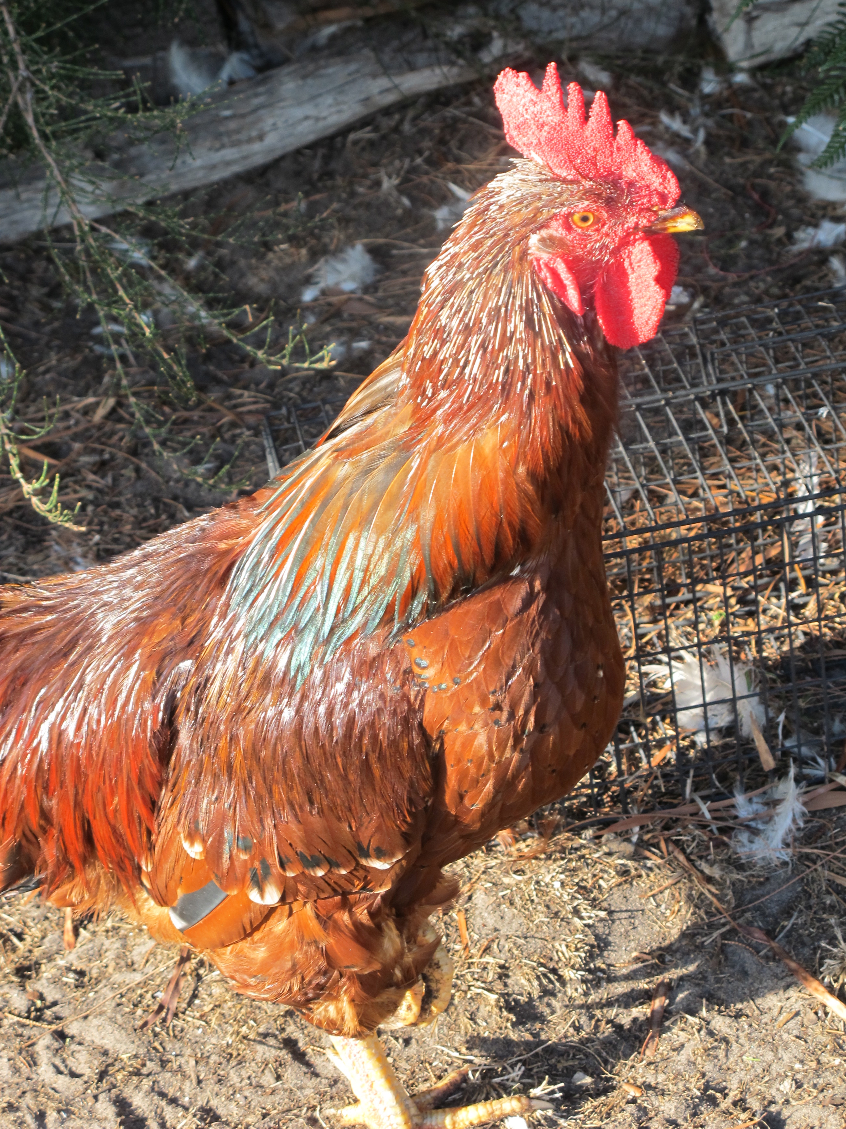 Terry the rooster is a much happier chap these days. He and Jethro seem to have sorted out their differences and have divided the hens between them. Terry still comes to chat with us each morning however. He seems to remember how Robert nursed him back to health after the beating up he received from Jethro some months ago.