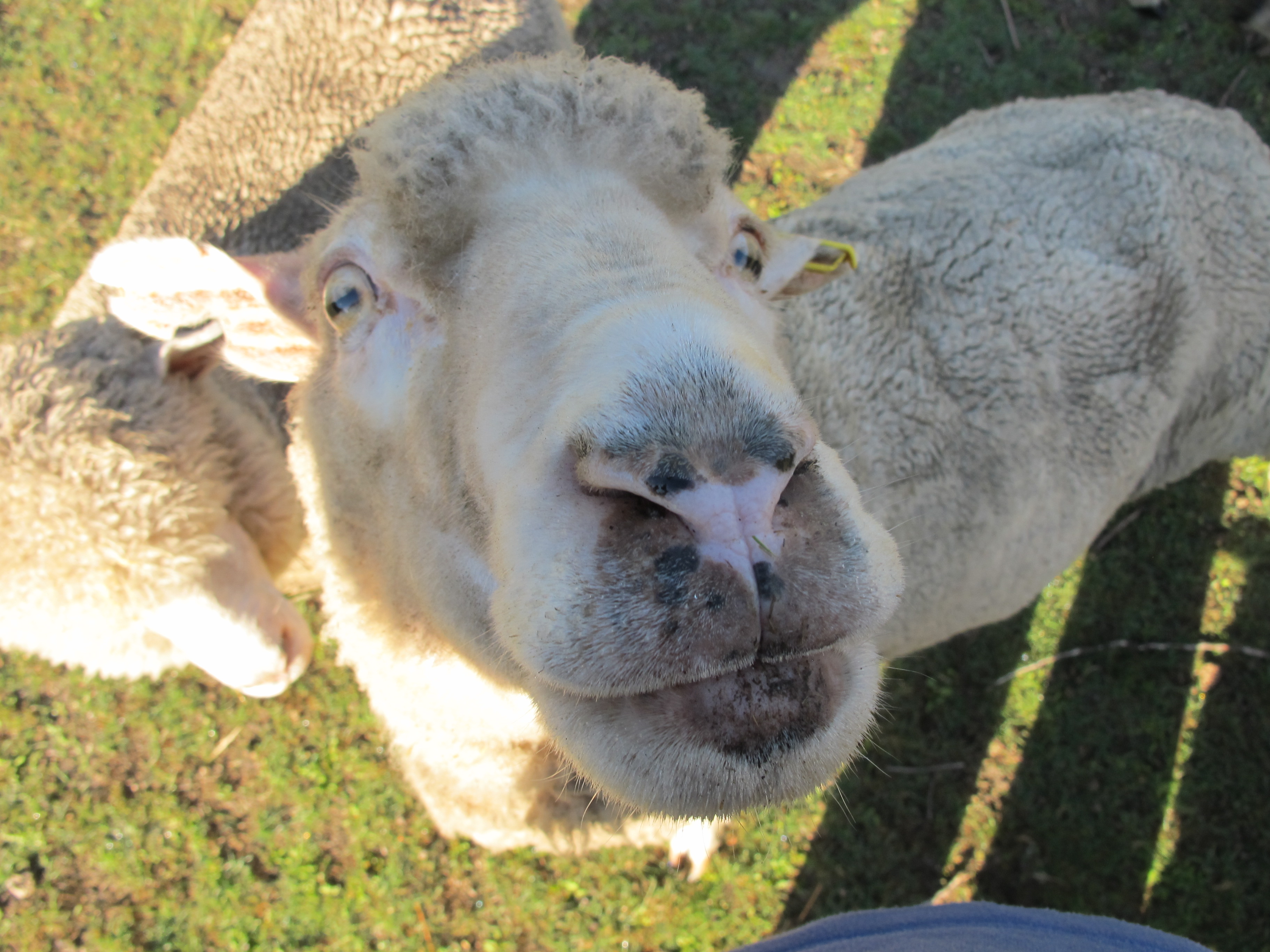 Doris the sheep is always happy to see me, though of course it’s food motivated. Already as fat as butter from the lush grass, she nevertheless has polished off a good portion of fresh cabbage leaves and an apple.