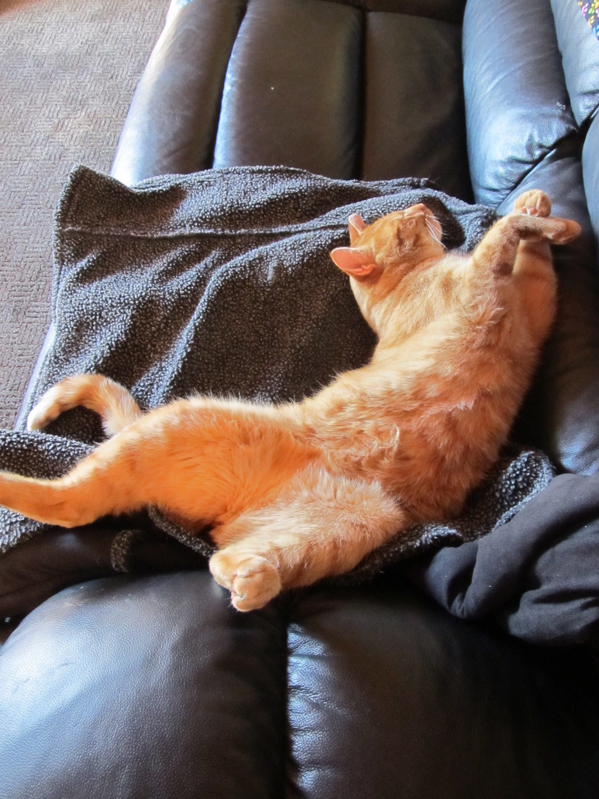 He could, of course, be outside in the winter sun, but ex-feral Tom prefers an old woolly jacket on the couch, with the wood heater warming the room for good measure. Don’t think he suffers from too many trust issues any more. Good life for a cat I think.