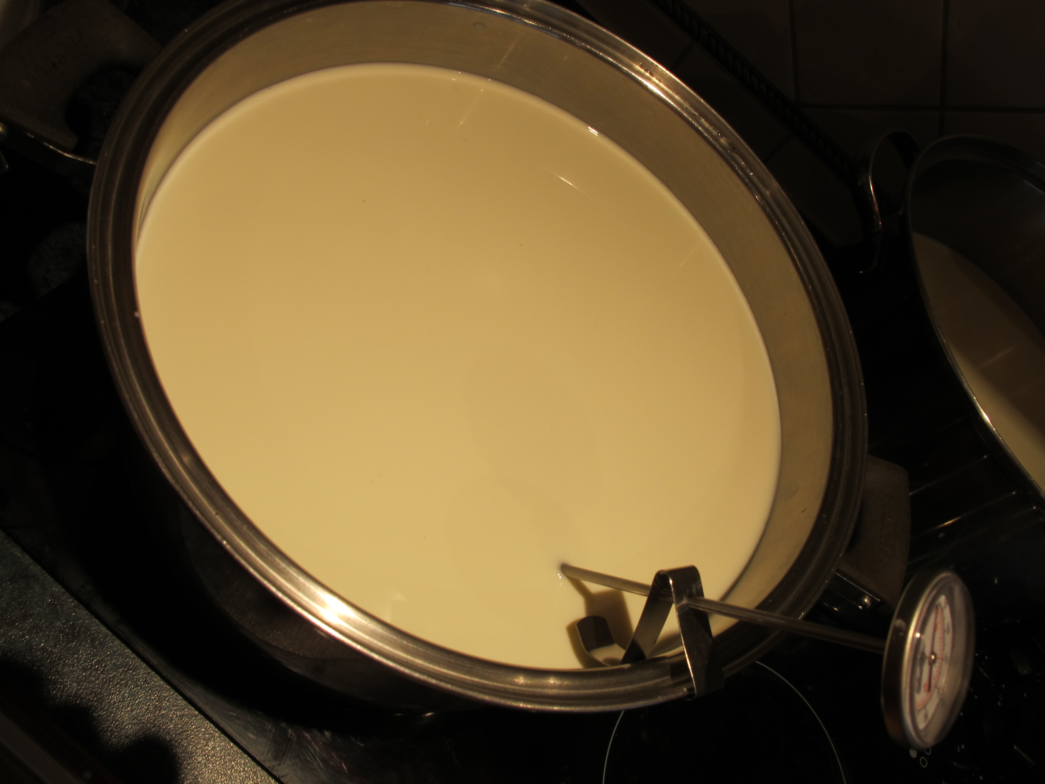 Sleepy, rainy afternoon; perfect conditions for making a triple batch of halloumi and time to bottle off the sparkling rhubarb.