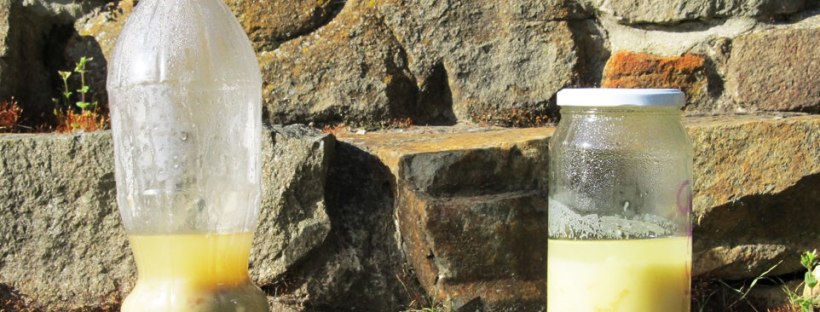 Bit chilly here today with a crisp frost on the grass, and here I am wanting two different yeasts to start to work. The sun-warmed stone front steps should do the trick.