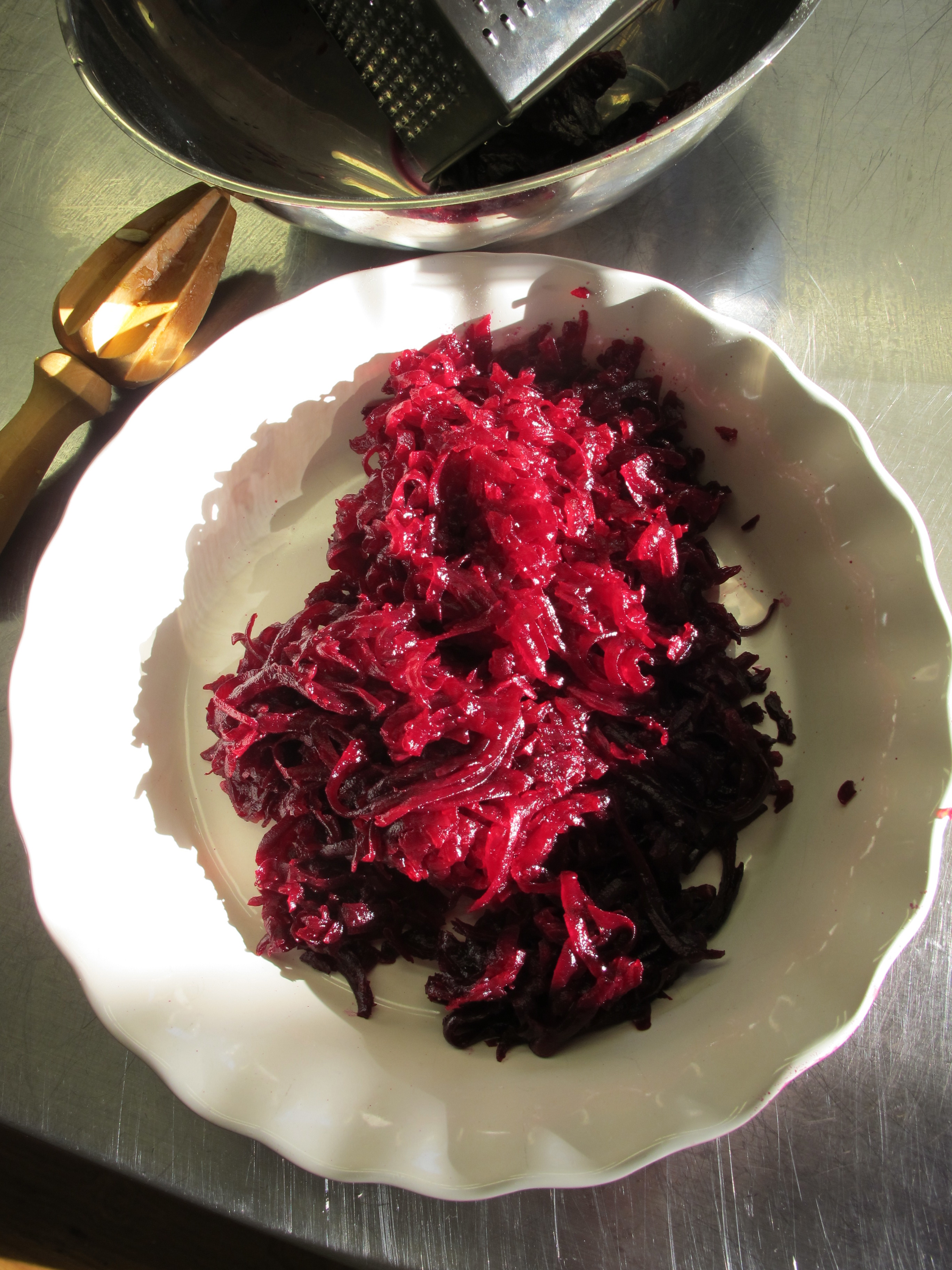 Now I know that this photo of the grated beetroot is not the best, but it looked so wonderful glistening in the early morning sun that I just had to try to capture it.