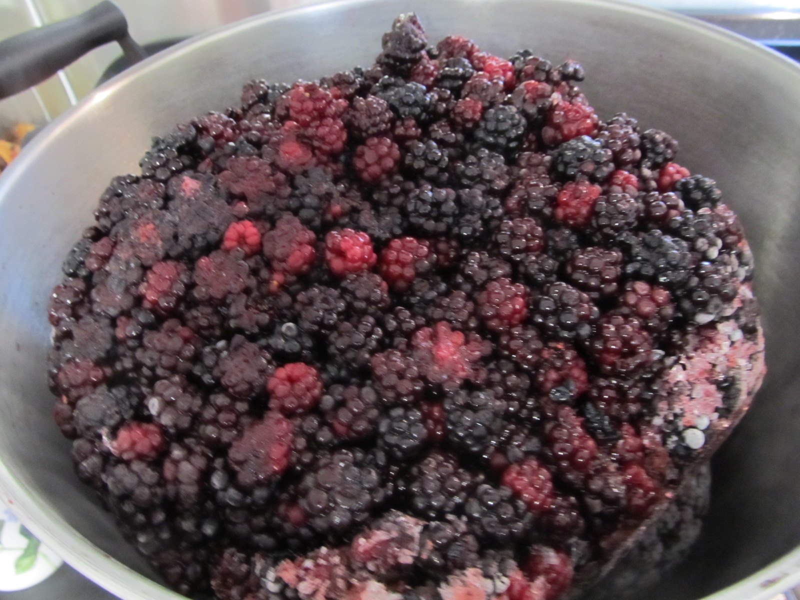 So …. busy afternoon. From last year’s freezer stock, I made some ‘essence of blackberry’ for Robert to experiment with in his making of a new blackberry beer. (The leftover blackberry pulp will be going to Miss Tina the pig of course).