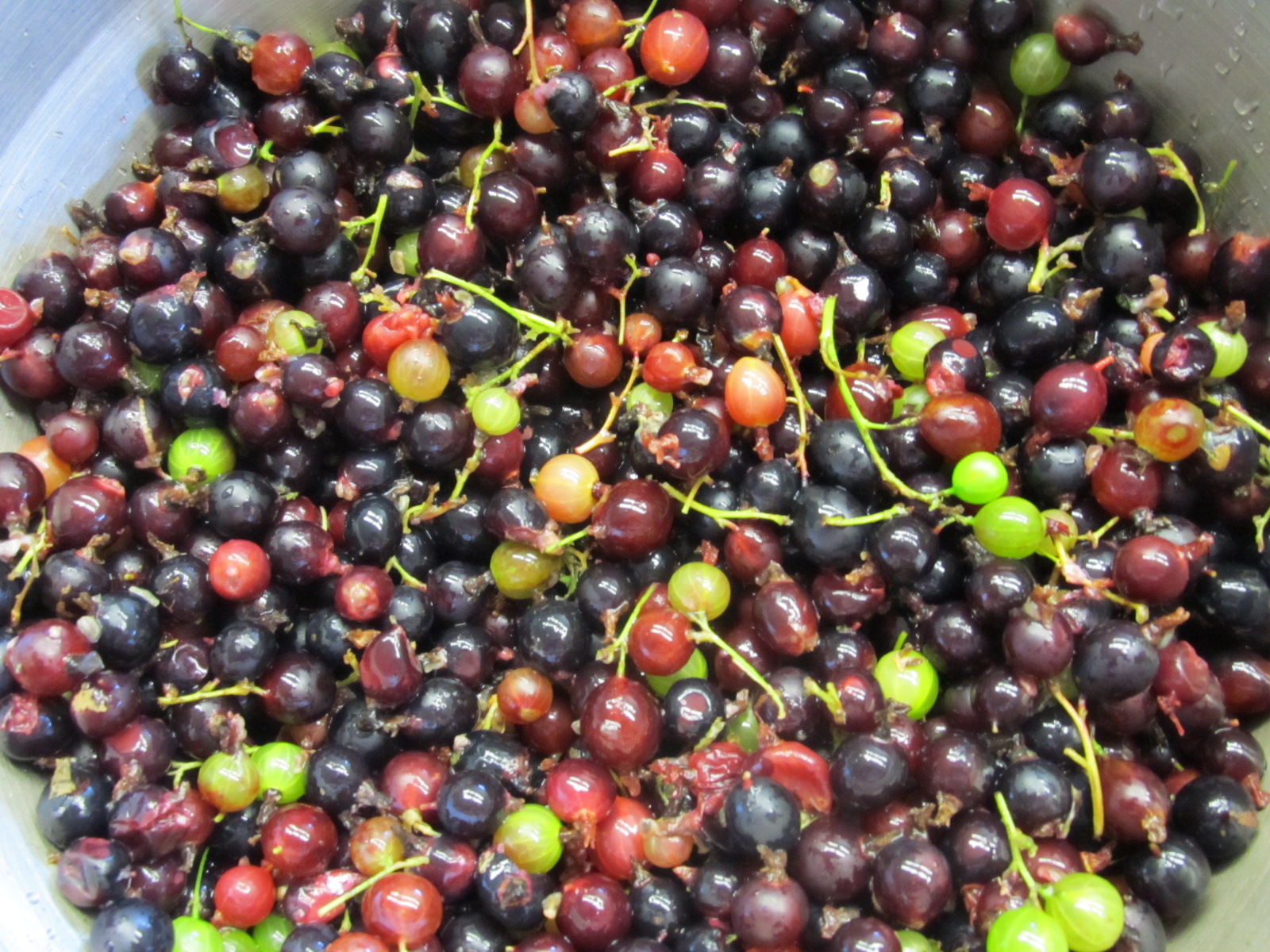 The green beetles that seem to have taken up permanent residence here have at least left the jostaberries alone. Inspired by the lady of the walnut tree this morning who was making blackcurrant jelly when we arrived, I decided to make jelly from our bowlfuls of fruit as well.