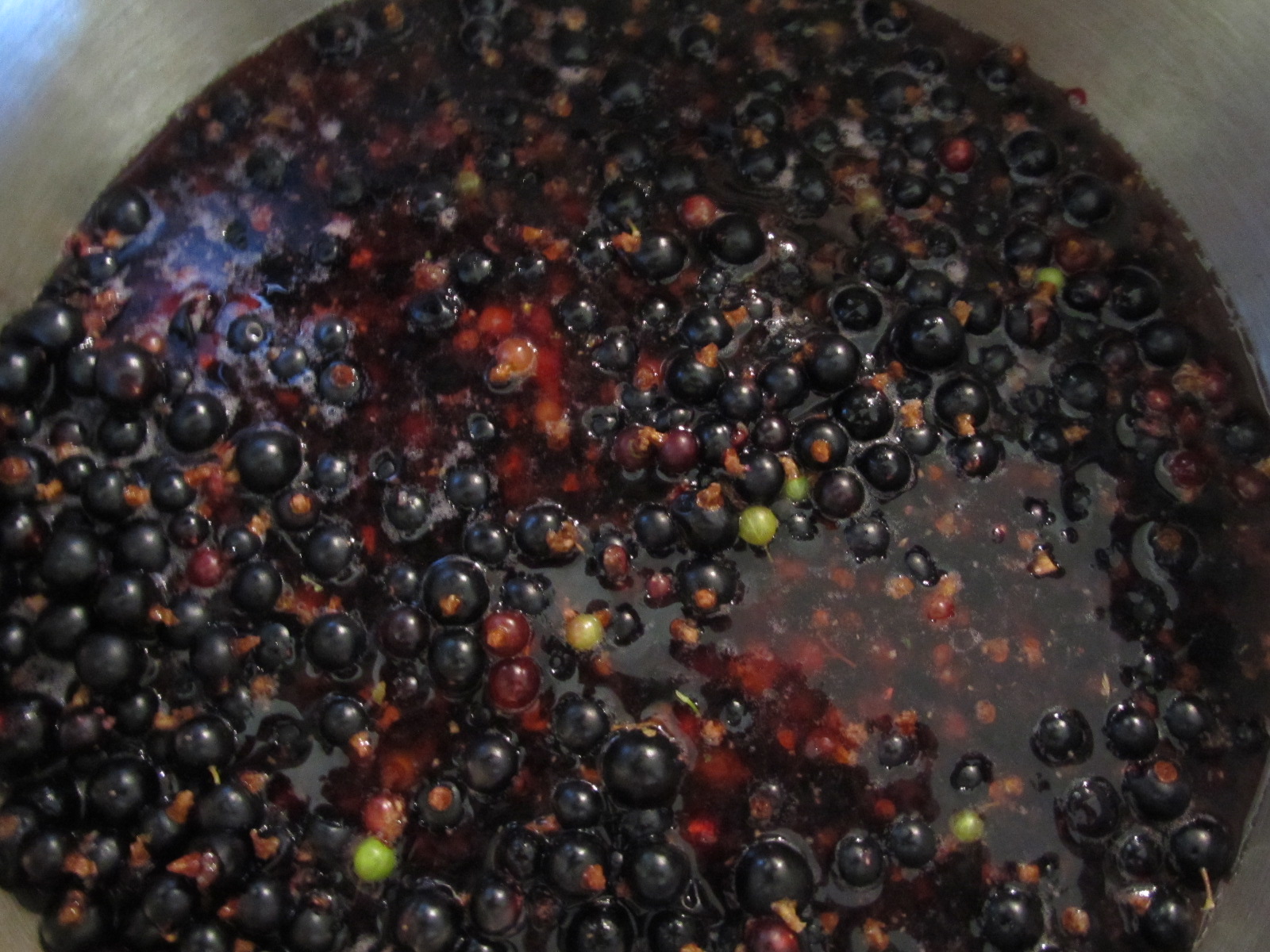 However, we have had more luck on the blackcurrant front. A large bowlful made its way into jam (no bugs!) and last night’s strained off juice was made into jelly.