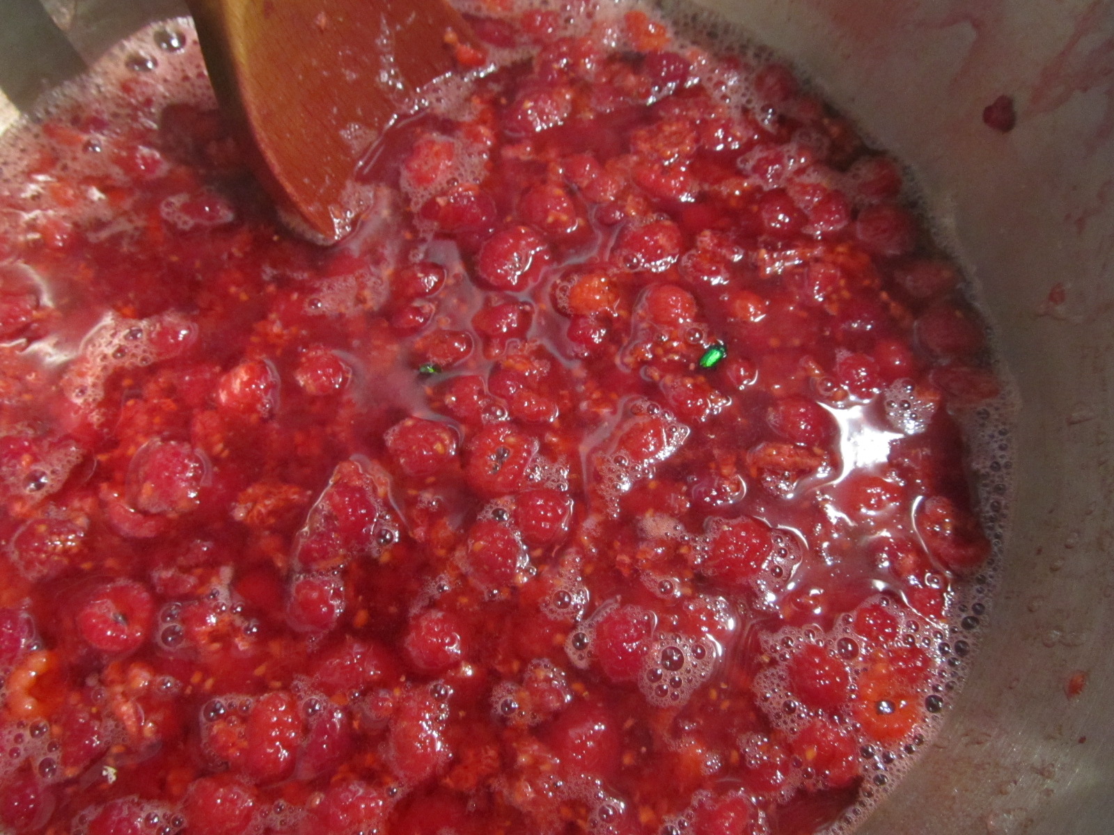 And so the saga of the green beetles continues….. I had hoped to eke out a few more jars of raspberry jam from the fruit remaining on those struggling raspberry canes. However, not content with eating the leaves, the beetles have now decided that they like raspberry juice, straight from the berry.
