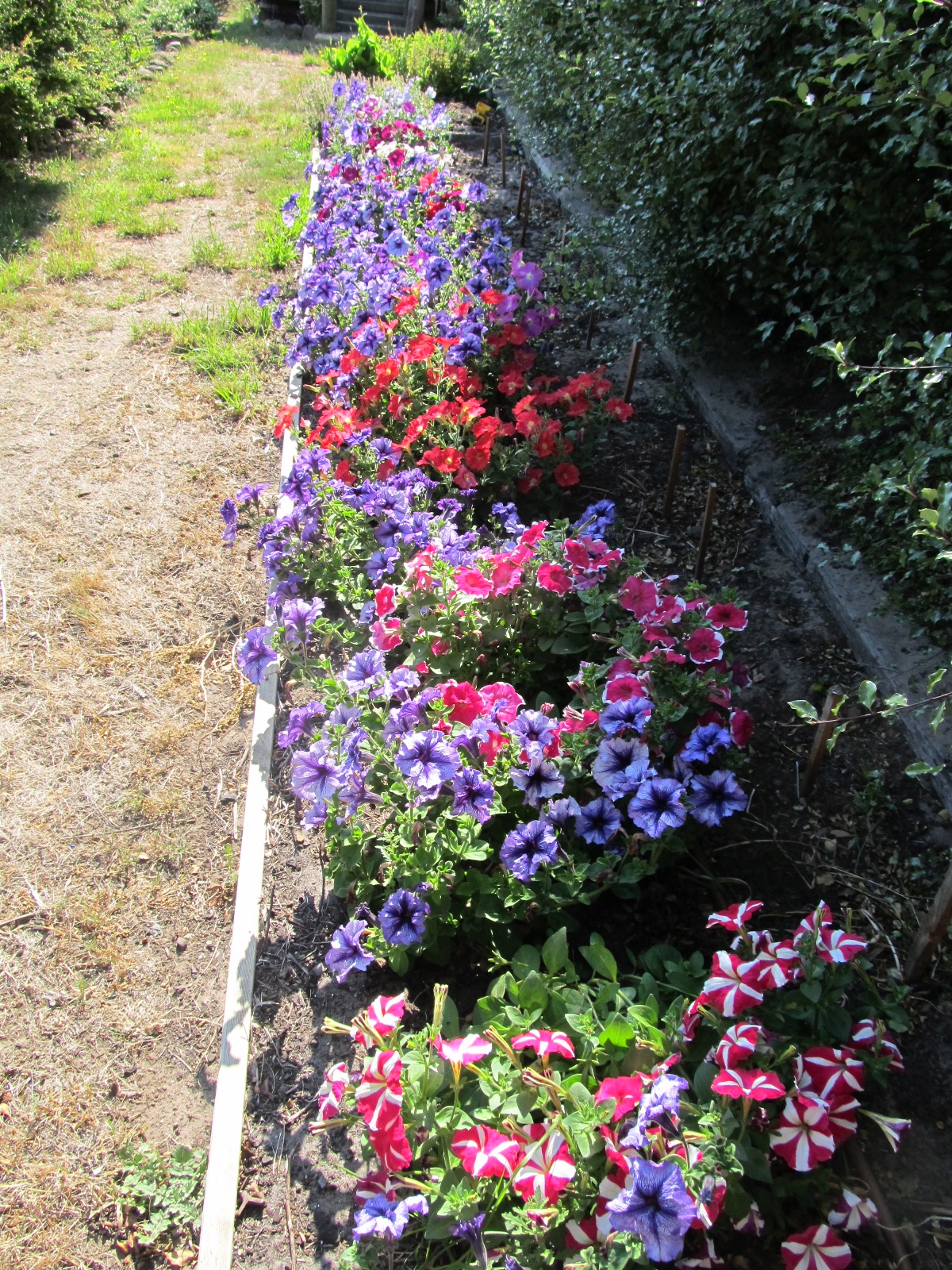 However rosemary, oregano, thyme and the beautiful flowering bergamot are very happy. Other flowers such as petunias, carnations and snapdragons bloom on and the citrus trees, safe now in their protective cages, are showing definite signs of a bumper crop in the not too distant future.