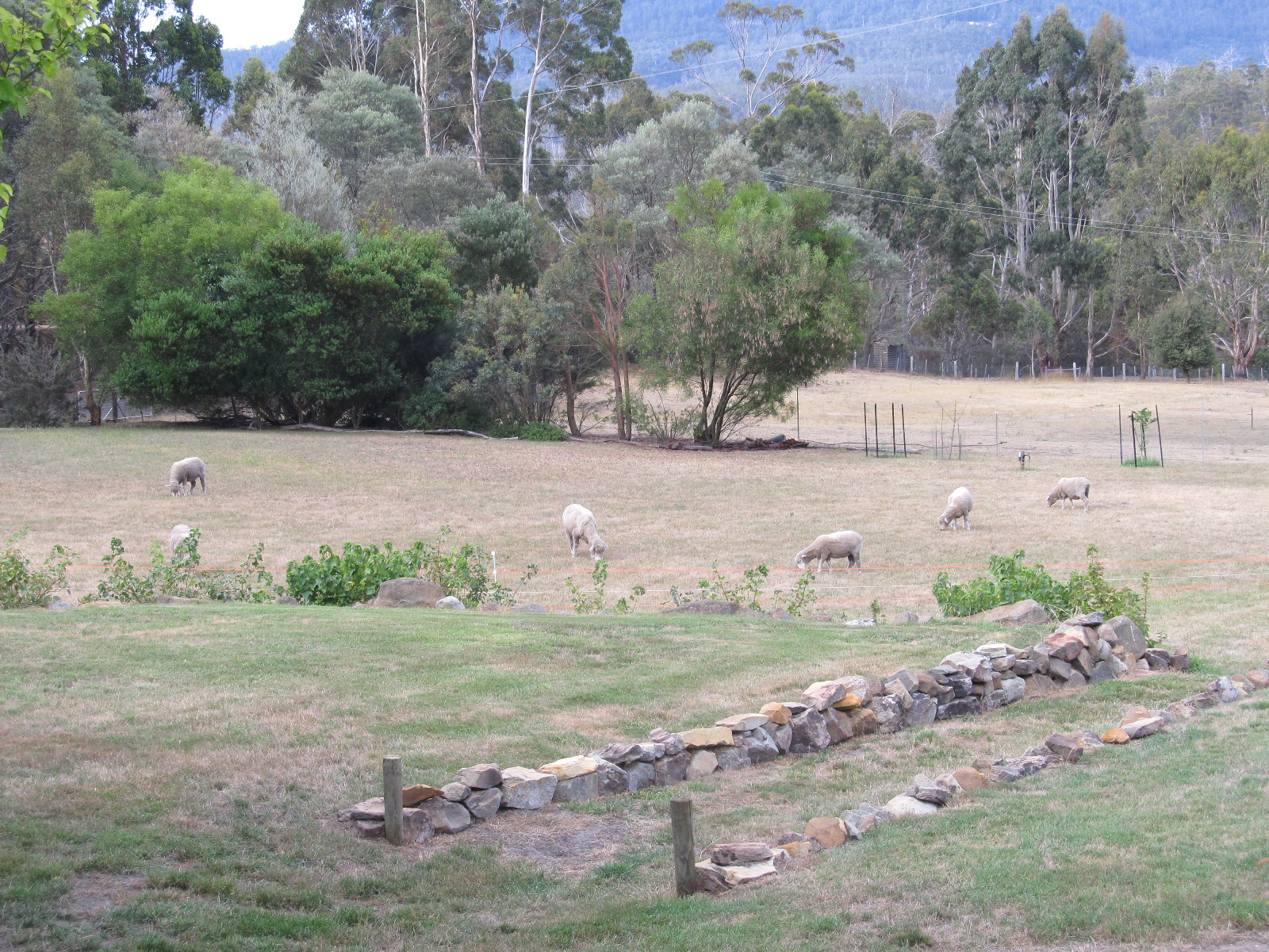 However, the paddocks are so devoid of vegetation that the sheep have had to be moved into the main area around the house. We’ve left patches un-mown so that they have something to eat. I keep telling them how lucky they are but they just chomp away and stare at me blankly.