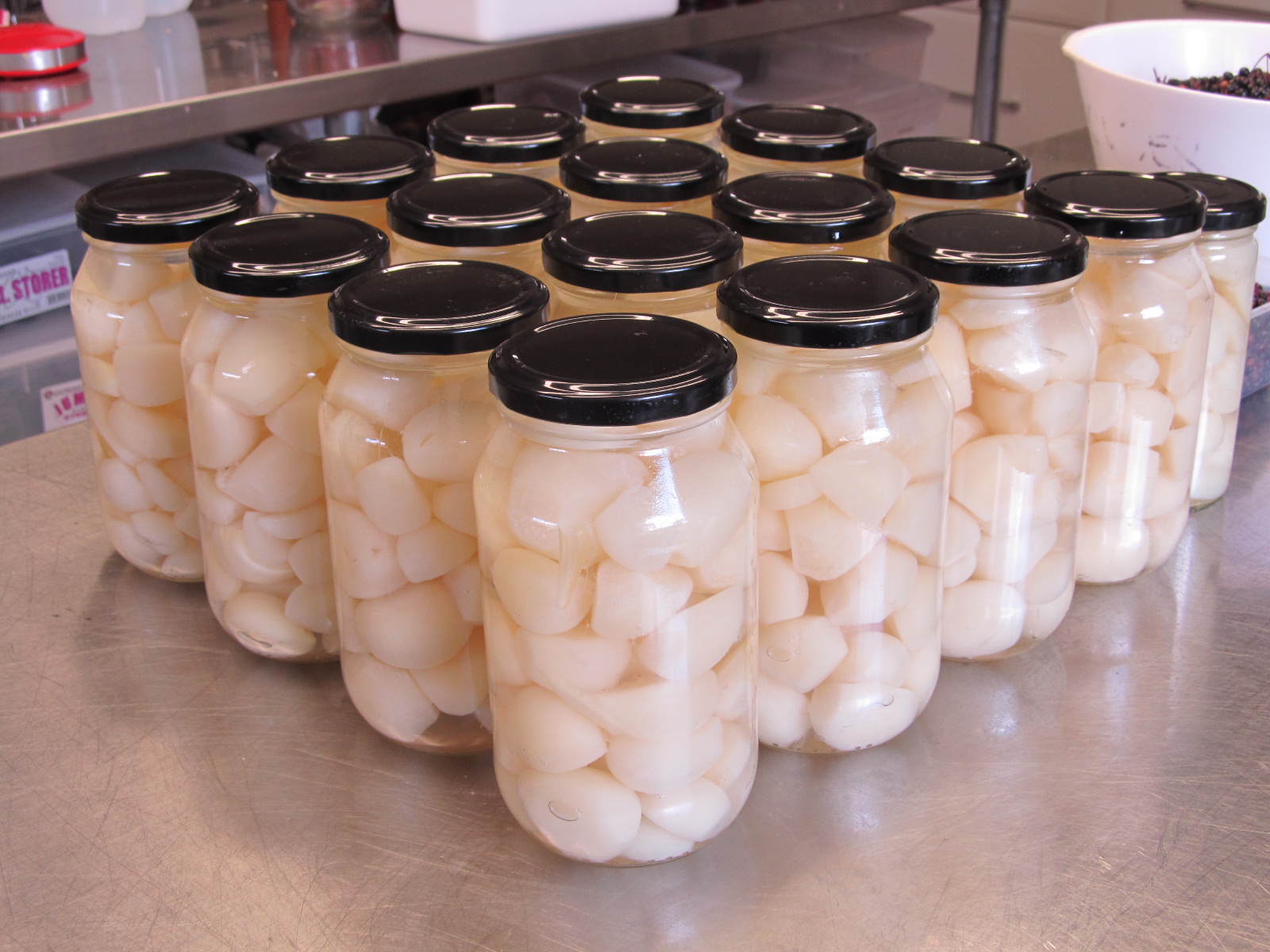 The end result was 16 very attractive jars of pickled garlic cloves, which will be ready for eating in a month’s time.