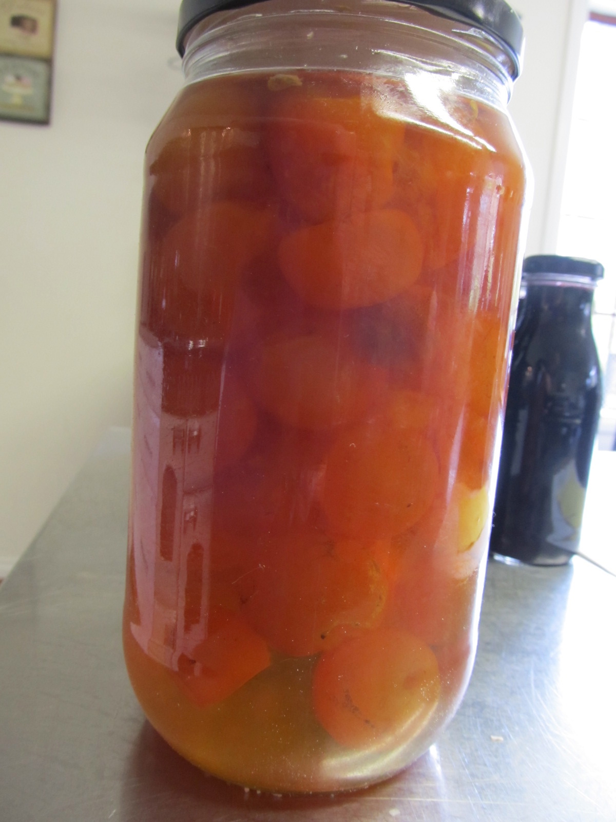 When I checked they turned out not to be preserved cherry plums as I’d thought, but rather confit cumquats. I should have known – they didn’t sit in the bottle like plums would have done. You can see from the photo that they look pretty ‘ordinary’.