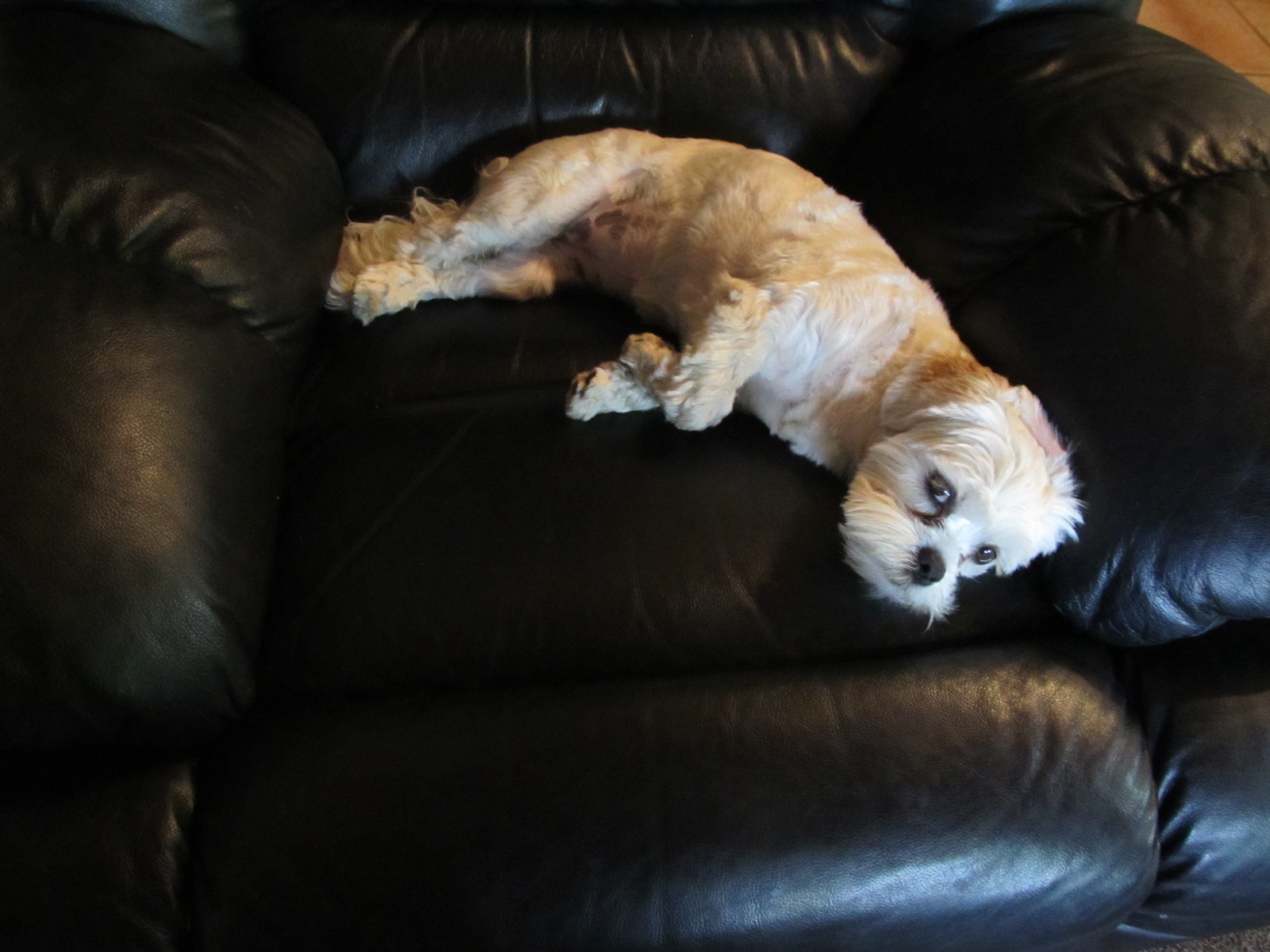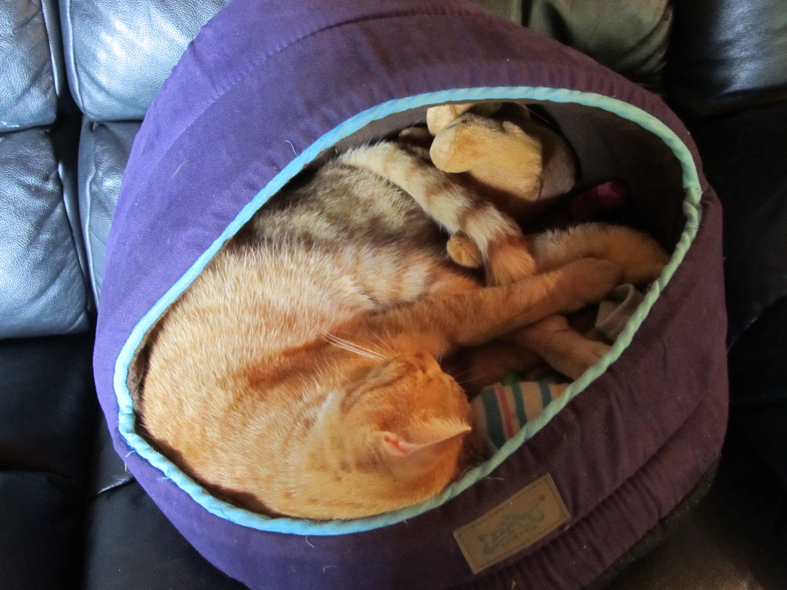 She jumped up on the couch, I expect with a view to asking Tom to move. She took one look at him, saw how entrenched he was, and gave up the cause. She retreated to my chair, looking quite depressed as you can see. Better that than a swipe with Tom’s hook claw I am sure she must have thought. You can see her coveted toys in, around and under Tom. Strange old cat he is.