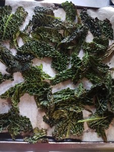 Cut the leaves (once stalk pieces are removed) into about 10cm pieces, then toss in a small amount of oil and a very light sprinkling of salt.