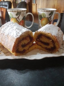 Bran muffins baked early this afternoon, cleaning up done, time for a cuppa with a slice of Swiss Roll with coffee for dessert.
