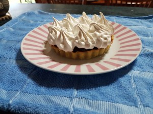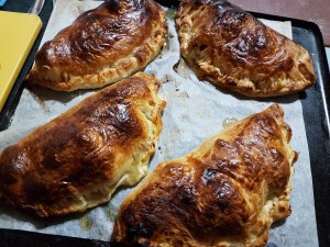 Amongst other things, Morello cherry meringue pies, chicken, apricot and rosemary pastries (rather rustic) and bagels.