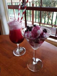 Used as a coulis, excellent. However, how about this (as pictured in the glass with straws)? An old fashioned ‘spider’. I’ll use the syrup as a base for mocktails too, cocktails – even better.