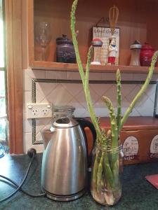 and some plants have grown astronomically. Take the example of the asparagus in this photo. It never grew a stalk when we lived by the seaside, but strangely here it prospers – this is just a couple of days’ growth.