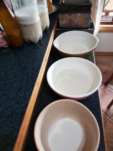 The hop yeast plants are also thriving, even though they live inside, must be the warmth. There are two for rising regular bread, plus a gluten free version. You can see how active they are in their respective bottles. Some of the hop plant is now incorporated into the sponge stage (in the bowls), all ready for bread baking day tomorrow.