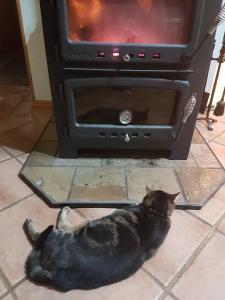 Meanwhile, amongst the pets a silent battle raged. Our cats are rather large so they had to take turns warming themselves in front of the Big Bakers Oven.
