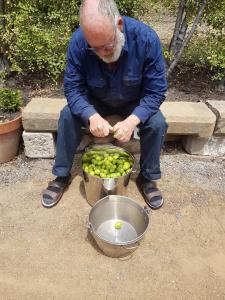 Robert assigns himself the task of pricking them all before their processing. It’s essential to wear gloves when you do this, or your hands will end up black for weeks.