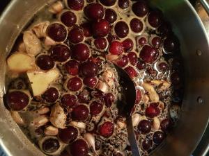 Another thing you can do with these red cherry plums is make a cordial syrup. It may sound unusual, but it’s very tasty indeed, not too sweet either. We made some in the cooking class here yesterday.