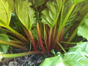 Meanwhile this morning, before the heat of the day (in theory), it was time to harvest rhubarb.