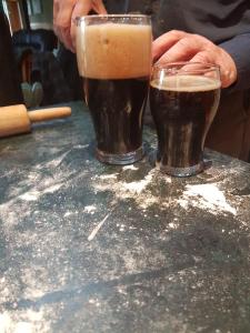 It was also a good opportunity for we adults to try out as an accompaniment the cherry stout Robert made a while ago, and also the highly experimental (but as it turns out delicious) Mangel Wurzel beer.