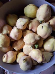 We came home with a lovely tub trug full of quinces from a tree in their garden.