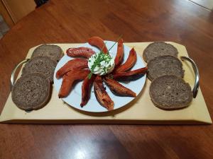 Roasted some quince slices in Hester BBO today. They were perfect to serve with a pre-dinner wine. The accompaniments were fresh made labna sprinkled with chives, and slices of the pumpernickel bread I made a day or two ago.