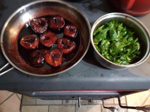 Tonight’s dinner in the making – spiced rolled beef roast for main course, with accompaniments of roasted vegetables, all the usual suspects, and little carrot and parsley pillows. Fresh spinach straight from the garden as well.