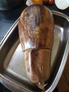 For dinner this evening, as one of the vegetable accompaniments, the seeds were removed and the hollow filled with garlic and parsley butter. More like an appetiser really I suppose, as we dipped smallish chunks of bread into the tasty butter and then piled some of the soft gourd flesh on top.