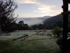 This morning was a perfect example. I was up extra early to do some baking, and the mist progress creeping up into this little property, with a good coating of frost on the grass, was simply stunning to watch.