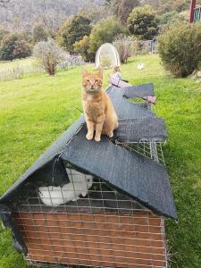 Speaking of things orange – our old ex-feral Tom is much in love with the rabbit who has come to stay for a while. I think it’s maybe he fancied the rabbit for dinner at least in the initial stages, as you can tell by the guilty look on his face. However, now they seem to be best of friends, as Snowball has worked out how to dodge the paws and claws, making a game of it in fact.