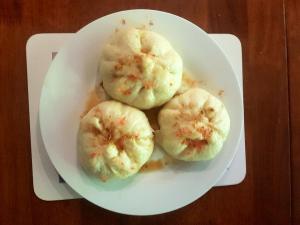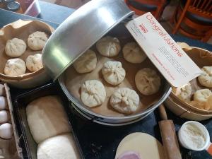One problem – too may buns for my mere two bamboo steamer baskets. I vaguely remembered buying an old second hand metal steamer about 6 years ago, and sure enough, there it was, sitting neglected, in the top of a cupboard of the cooking school.