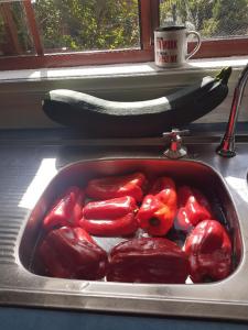 Meanwhile, this time of year I get a craving for Ajvar. Must be that red capsicum are in plentiful supply. No aubergine in sight so decided to use the last large zucchini instead, before the next of the bumper crop comes in from the garden.