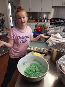 Now it’s an unfortunate thing that peppermint essence and rose water are both clear liquids. We tasted Charly’s dough once it was mixed.