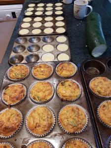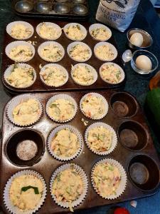 The photo – a little snack for when they arrive being prepared early this morning – savoury muffins that included fresh herbs and vegetables from the garden.