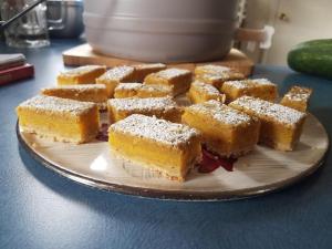 Took a recipe from the internet and reduced the sugar hugely. What do you know …. the lemon and lavender slice then separated into 3 layers, one of which was an unintended, but delicious, lemon custard, sitting between a layer of crisp lavender shortbread and a crunchy lightly-lavendered crumble topping.