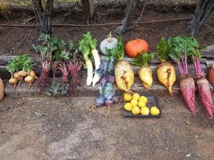 Just look at these gorgeous specimens for instance – Mangel Wurzels (red and yellow), crapaudine, Kiwanos, kohlrabi, Daikon and even pumpkins. (Grows incredible vegetables does our friend Derek).