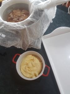 By the way in the background the pot with the muslin lined sieve over it? Quince vinegar being strained off. Makes a great salad dressing.
