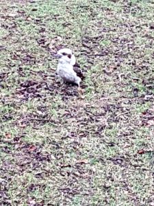 Each year we have a family of kookaburras arrive for the first few weeks of real winter cold, usually after the Solstice. Right on cue, here is the dad – looks like he’s shivering to me.