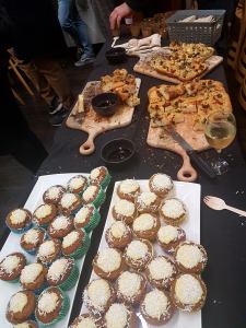 These were the Focaccia with semi-dried tomatoes and spinach, and vegan carrot and cranberry muffins. Fellow contributor of recipes Phil Shanny provided absolutely delicious Middle Eastern Charred Kale and Fetta salad cups.